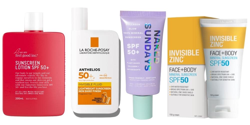 • Physical sunscreens with zinc oxide (great for sensitive skin)